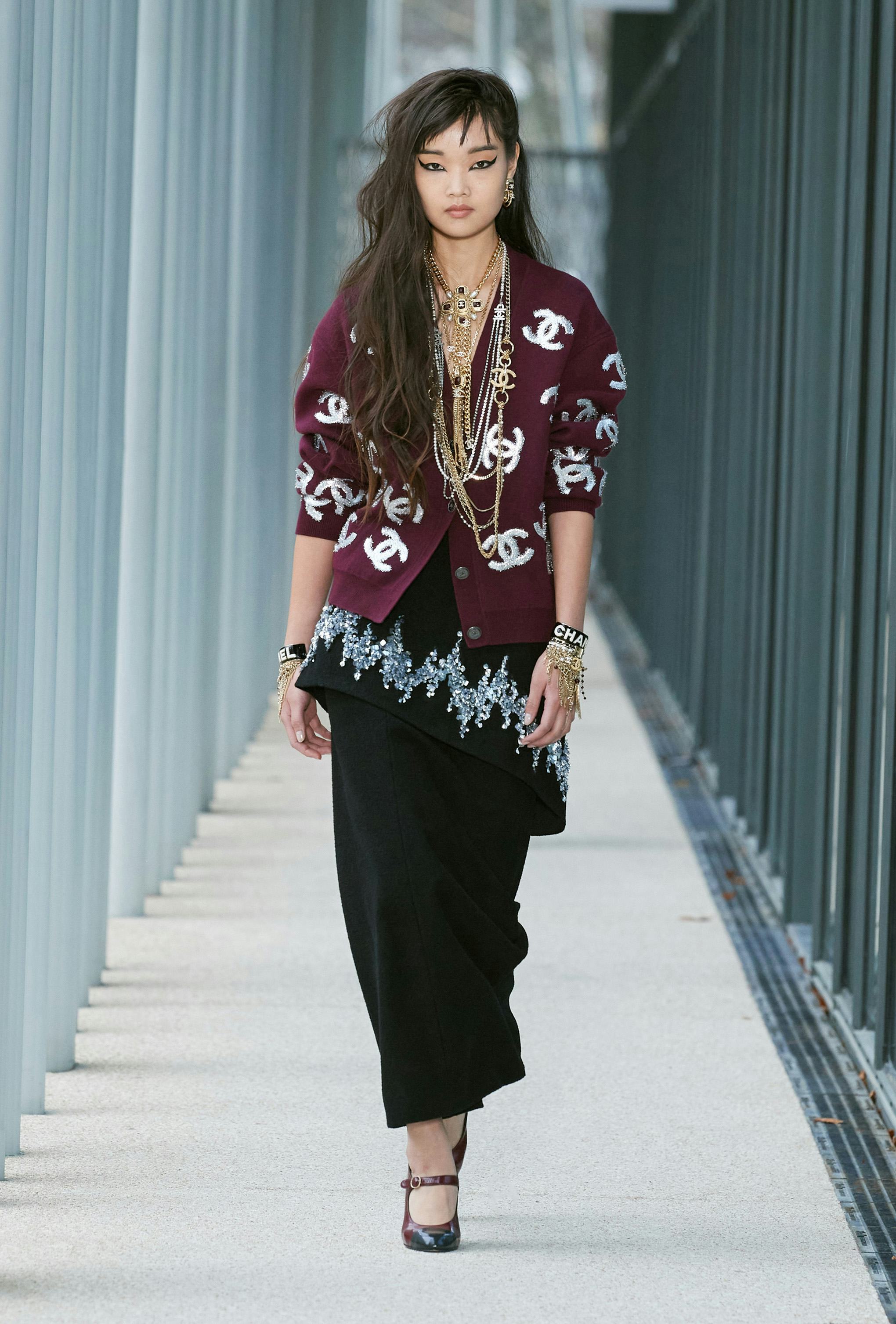 Chanel staged its annual Métiers d’Art show—a showcase of its many legendary artisans—in a Paris space dedicated to the crafts people themselves. The newly opened 19M building complex houses 11 of its famed partners in design from milliner Maison Michel to the embroiderers of Lesage. The maximalist collection was set to a performance by Soo Joo Park, who both walked the runway and made her debut as the musician Ether. Per Virginie Viard in the show notes, “Many of the embroideries are inspired by the structure of the building itself, such as those by Montex, which are very graphic and in silver sequins.”