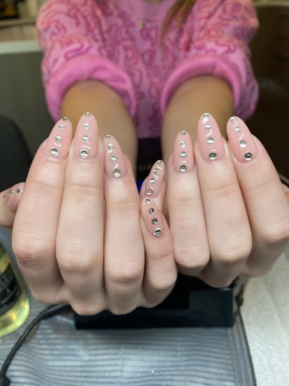 Minerva is the creative mind behind all of the iconic nail art we saw at the New Year’s party in episode one, including Kat’s graphic design, Cassie’s diamante nails, and Maddy’s Mugler-inspired look. We’ll also be seeing more of her work as the plot (and subsequent beauty looks) unfold this season. Minerva grew up in Orange County and moved to Los Angeles in 2009, where she began working for the massive party group, A Club Called Rhonda and doing her own nails as a hobby. “Quickly people began to take notice,” she told NYLON. “A lot of industry people went to Rhonda like stylists and make-up artists, and so they introduced me to their celebrity clients.” Minerva’s first celebrity nail client was Carmen Electra.