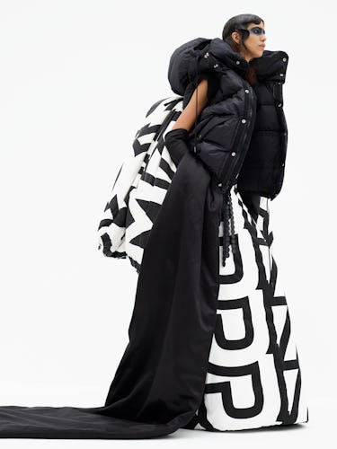 With the word “elevate” in mind, they took things up a notch. “That’s what we’re doing with these pictures, with the hair and the makeup and the casting and the clothes,” Jacobs said. “We’re literally and figuratively raising them up to a more impressive level: It made no difference whether it’s denim that has been enzyme and acid-washed, or five pairs of cargo pants re-assembled. It was just in the approach.” The resulting standouts include a dramatic puffer gown worn by Mica Argañaraz and giant denim skirts worn by Gigi and Bella Hadid.