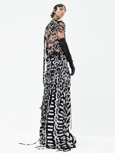 Jacobs is an avid Instagram user—we highly recommend a follow—and the app ended up shaping his approach. Little did they know it when they tagging him in throwbacks, fans who’ve been looking back on, say, Lady Gaga’s dramatic hair and makeup at his gothic fall 2016 showing ended up directly influencing his latest. For the most part, though, the design team’s “appropriating and recontextualizing” of its own history focused on Jacobs’s vision for spring 2022. “We played with the clothes that we made before in order to make other, new clothes,” the designer explained.