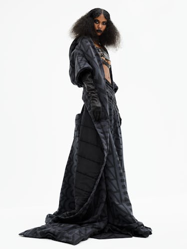 In case you couldn’t tell from the super-sized silhouettes, Jacobs isn’t among those asking “is that what people want to wear?” when taking in a show at fashion week. “I think, ‘Is this what fashion people want to see?,” he said. “Then, of course, if it’s something I want to see, it’s something I dream of wearing. And if I get to do my thing and then someone wears it and it becomes part of their story I just think, wow, I really won the lottery.” Judging from the Instagram comments, he did indeed. “10 is a GAGGGGGGG,” read one of many responses to the final, blanket-like look worn seen on Anok Yai below.