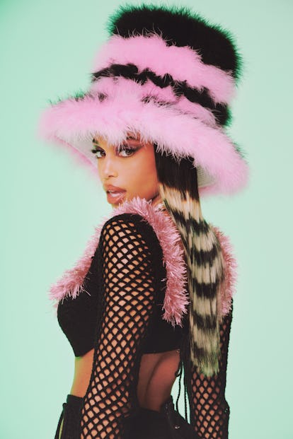 Lensed by Los Angeles-based photographer Coughs, the 25-year-old was captured in a number of fashion-forward ensembles, from oversized fuzzy hats and fishnets to head-to-toe bling and micro-mini silhouettes. The looks were completed with the help of makeup artist Leo Chaparro, nail artist Sojn Oh, hairstylist Joey George, and fashion stylist Chris Horan. “I’m honored to be a part of this launch as The Zine’s first cover star ✨,” the model wrote on Instagram.