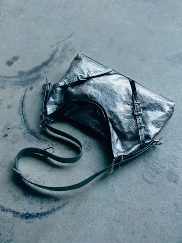 Voyou is a slang term meaning “bad boy” in French, an apt moniker for a bag that pairs complex construction with a contrasting, nonchalant biker vibe. The slouchy hobo silhouette features an adjustable strap, distinctive hardware embellishments, and an interior zippered compartment for all your essentials. Available in mini, medium, and large sizes as well as multiple luxurious fabrications such as subtle-grained leather and satin, it offers a choose-your-own-adventure of individual expression.