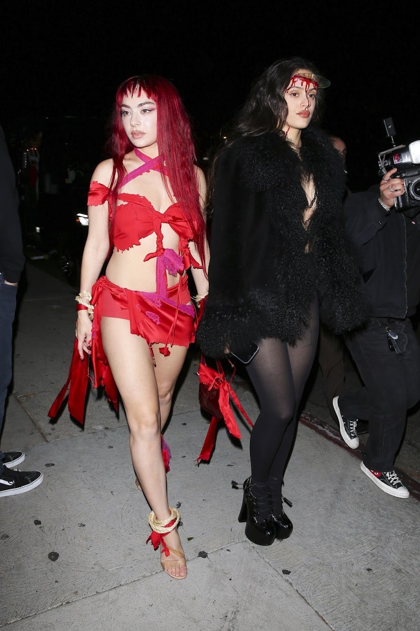 For Halloween, Rosalía embodied Magdalena Bay’s Imaginal Disk cover with a CD inserted straight into her forehead, and wore a Charlotte Simone coat with nothing but panties, tights, and Vivienne Westwood platforms.