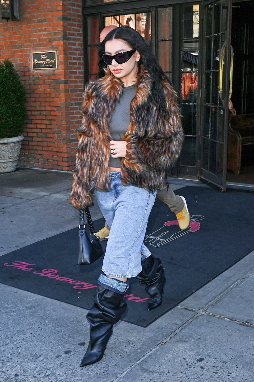Charli’s in New York prepping for her double-duty SNL takeover on Nov. 16, and she stepped out of the Bowery Hotel in a cropped shaggy jacket and slouchy denim shorts, with peeks of skin at her midriff and knee.