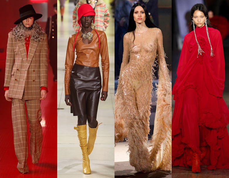 From left to right: looks from the Fall/Winter 2025 runways of Valentino, Gucci, Miu Miu, and Fendi