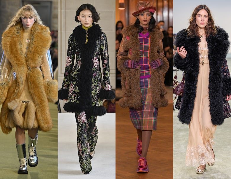 Shearling is frequently a focal point for the fall collections, but this season’s take was special: designers shaved and dyed the material to mimic the luxe look and feel of mink coats. (Many also made a point to emphasize that their garments were shearling, not faux fur.) Fendi, a brand known for its heritage in the fur space, opened its centennial show with a bold shearling power coat, cementing the trend at Milan Fashion Week in February.