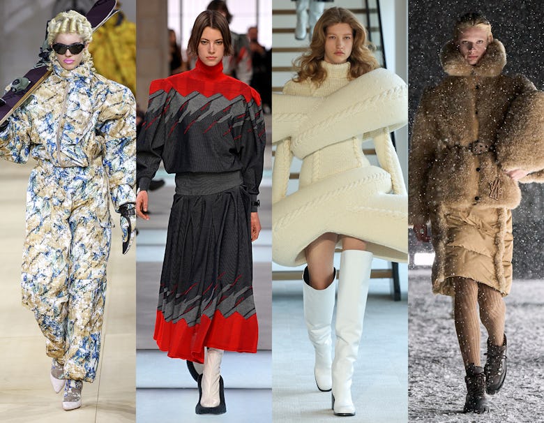These looks all have one thing in common: they are perfect for everything but skiing. Duran Lantink took your classic sweater for the slopes and tweaked it so that no one would dare come close to you while you’re coming down the mountain. Acne and Marc Jacobs put their own spin on Fair Isle knits, Alaïa gave a whole new meaning to the term bunny slopes, and Moncler and Balenciaga took puffers to new heights.