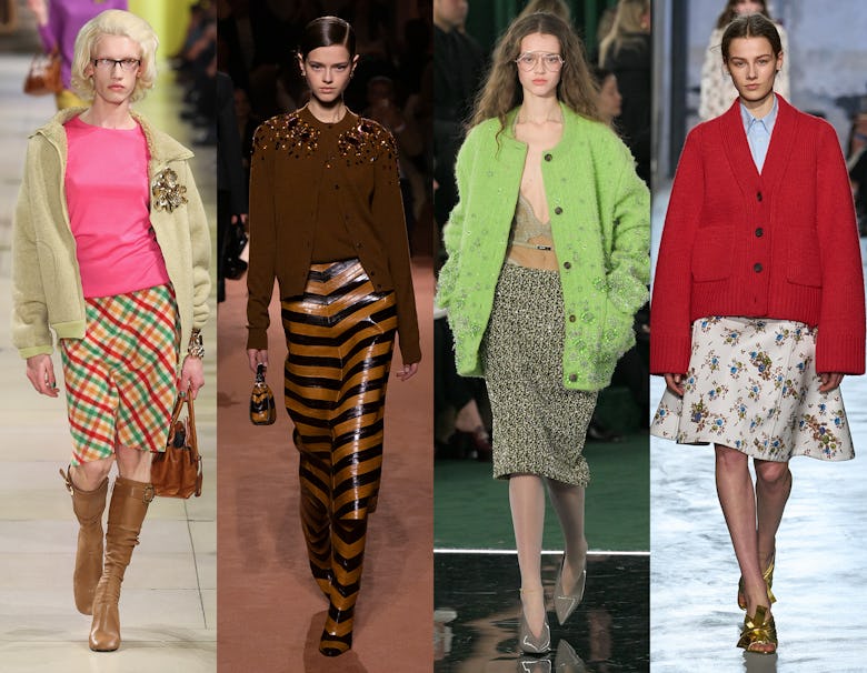 From left to right: looks from the Fall/Winter 2025 runways of Miu Miu, Fendi, Gucci, and No. 21
